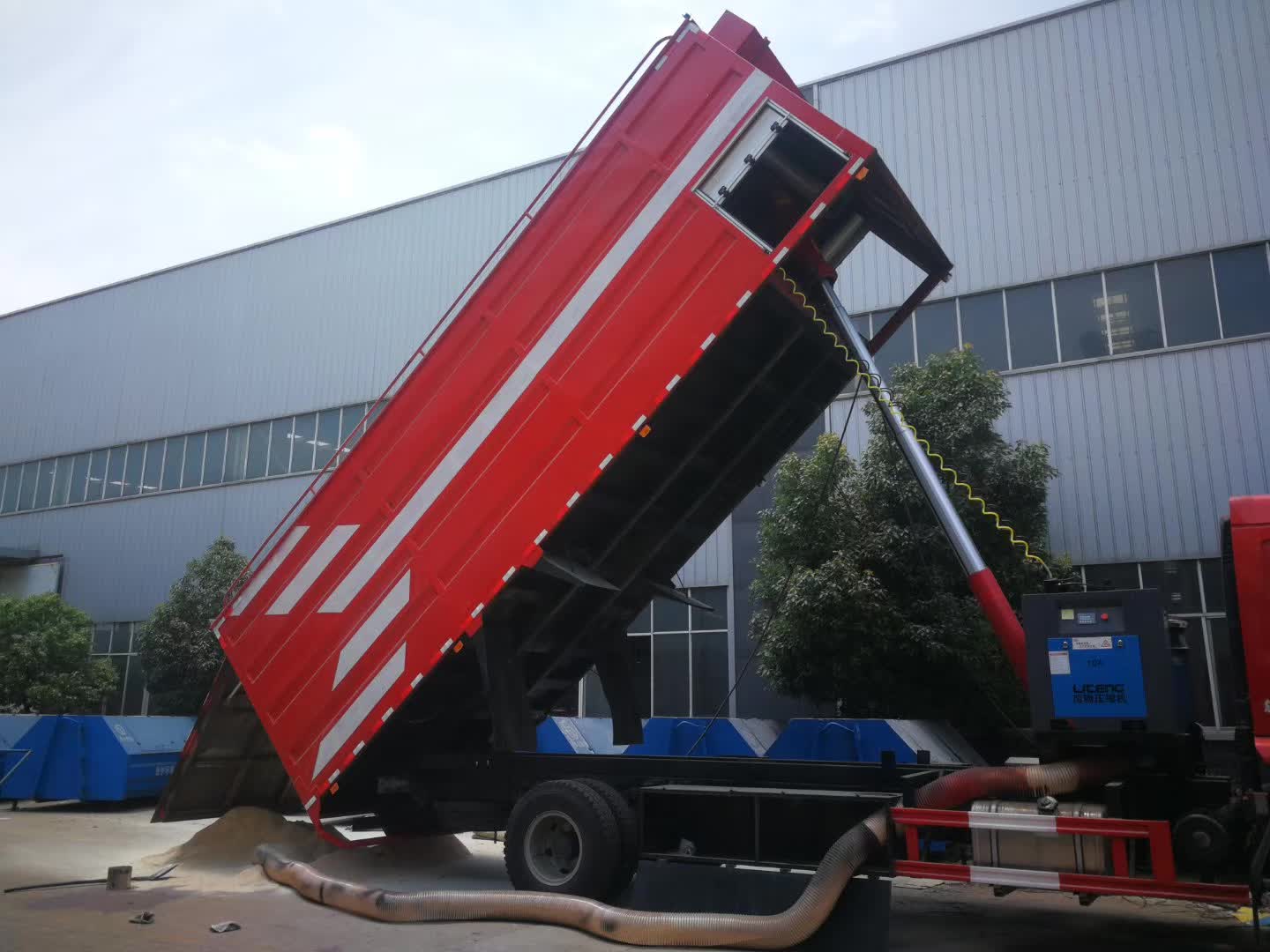 鋸末收集運(yùn)輸車,柳汽乘龍底盤(pán),玉柴180馬力,軸距5700,法斯特8檔,10.00鋼絲胎,散裝糧食運(yùn)輸車公告,整車尺寸10020*2500*3900,總質(zhì)量18000kg,容積36立方米,液壓裝置卸料,脈沖除塵防爆系統(tǒng)