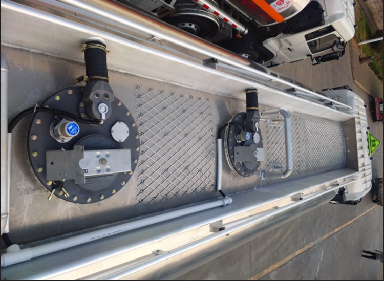 4.附件部分:鋁合金出口保護箱、鋁合金后爬梯、罐頂左右兩側鋁合金氣動舉升護欄(客戶在爬上罐頂時需要撐起來,起到保護作用)、鋁合金側防護欄、鋁合金加厚材質后保險杠、鋁合金工具箱一只、8公斤鐵質炮筒箱2只、全車LED示寬燈和后尾燈、全隱蔽式電氣路系統。